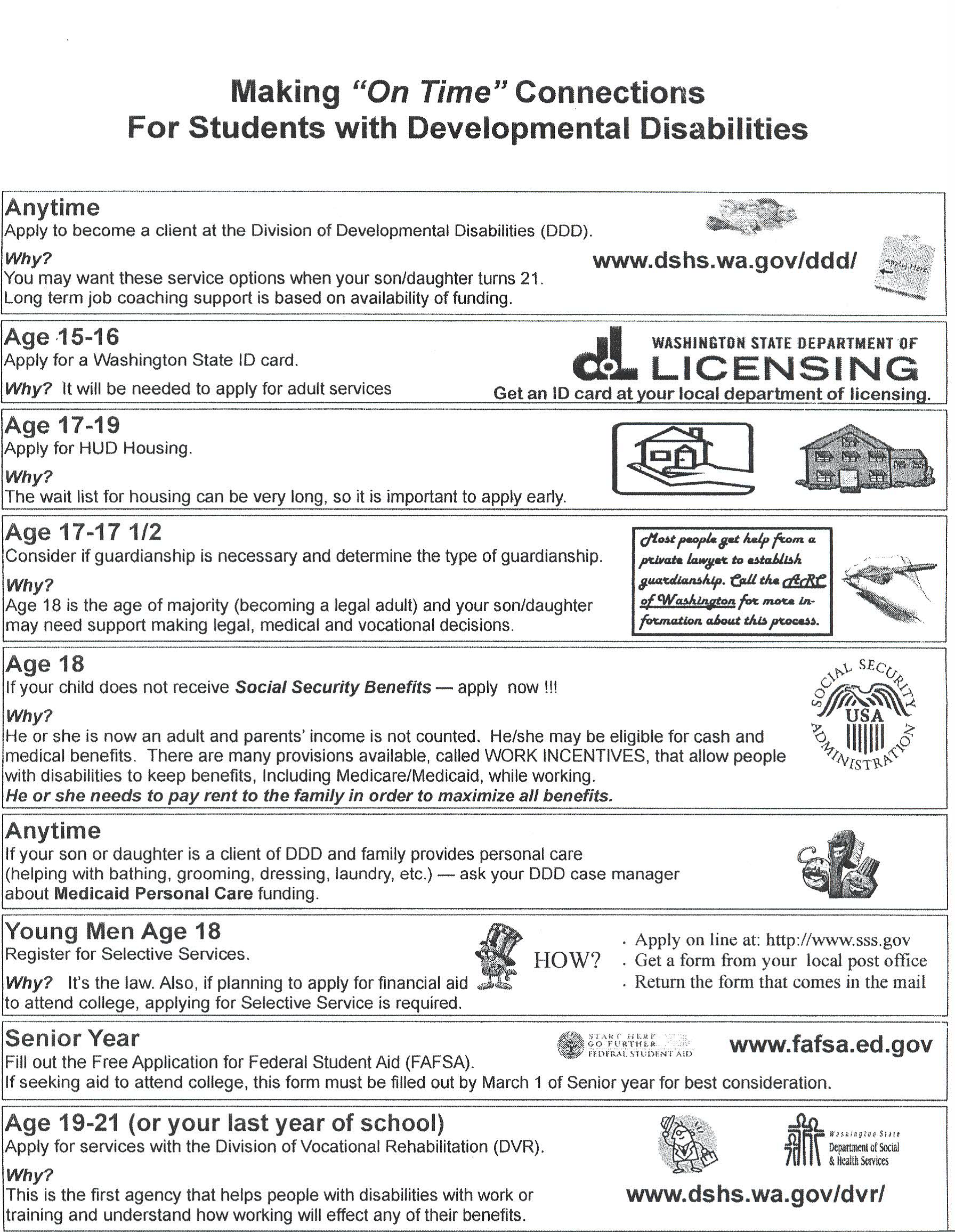 At age 3, the public school system assumes responsibility for education and related services. (Wahkiakum County Health and Human Services does not offer direct support with this age group)